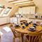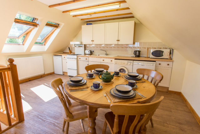 Upper level: French windows and balcony. Skylights for stargazing. Fully equipped kitchen and dining area; cooker, microwave, dishwasher, washer/dryer and fridge. | Lower level: Fully equipped open plan living room area with kitchen with gas cooker. Bathroom with bath and shower. Washing / dryer room.